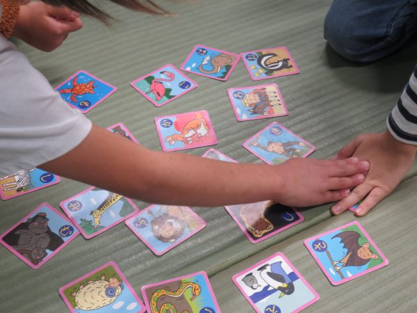 後期生の兄さんが読む読み札に合わせて、札を取ります。