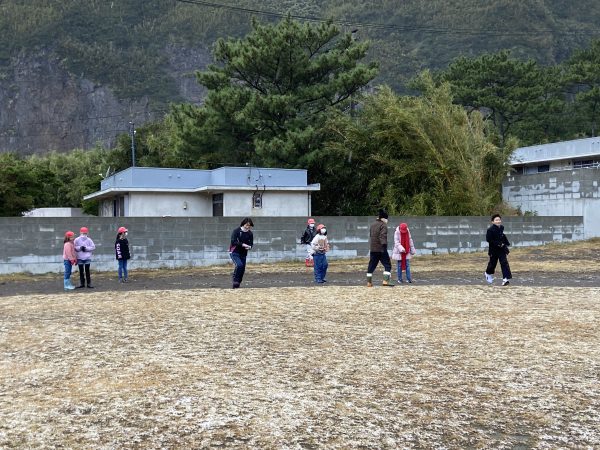 少し溶けて氷のようになった雪を集めて、固めて、思いっきり投げて楽しみました。