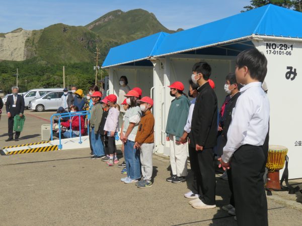 ジャンベでお出迎えをし、歓迎セレモニーを行いました。