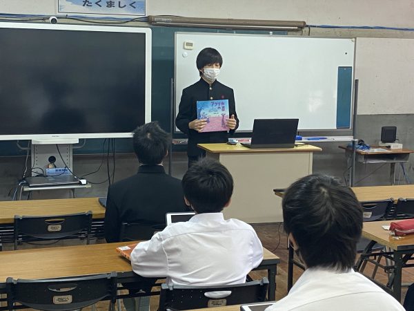 生徒は自分がおすすめする本を選び,みんなの前で読んだ感想あらすじなどを紹介しました。