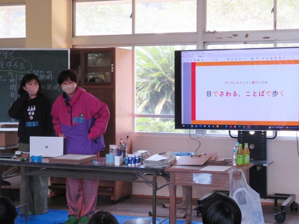 本日は、「芸術的な閃きによる離島の美術授業」として、アーティストの方をお招きした、図工・美術の特別授業を行いました。