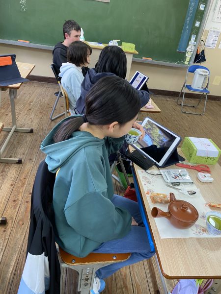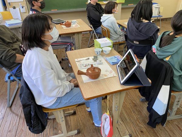 お茶の先生とは遠隔でつなぎ,保護者の方もお招きして,お茶を入れました。
