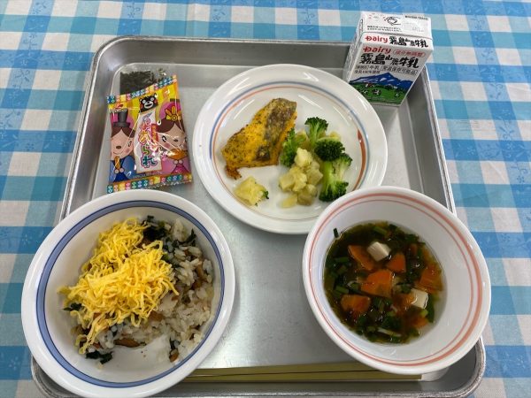 給食では,ひな祭りにちなんだちらし寿司やひなあられが出ました。久しぶりに食べるちらし寿司はとっても美味しかったです。