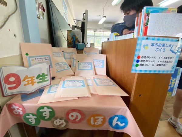 選んでくれた本をお楽しみ袋として、封筒に入れて生活委員会で図書室へ並べました。