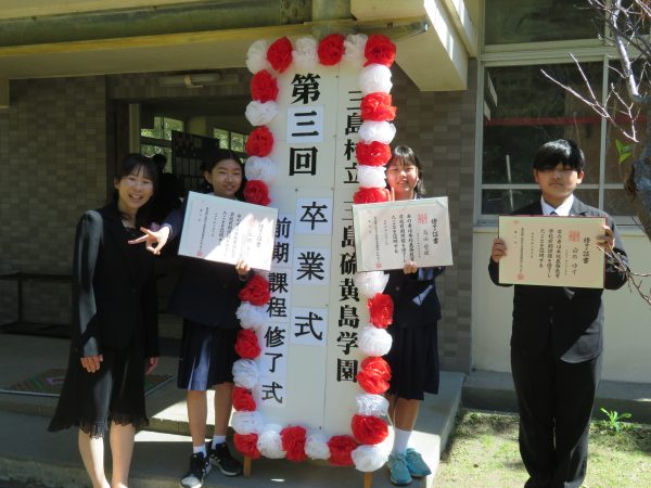 9年生の4人は、全員がしおかぜ留学生です。1年~3年間この硫黄島で過ごした日々を忘れずに、これからの自分の夢に向かって頑張ってほしいです。