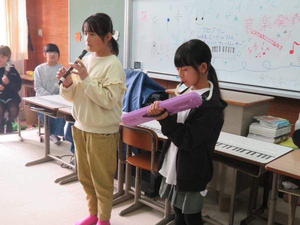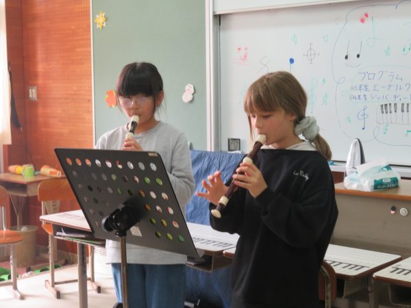 4年生は、ジッパディードゥーダをリコーダーと鍵盤ハーモニカで演奏しました。