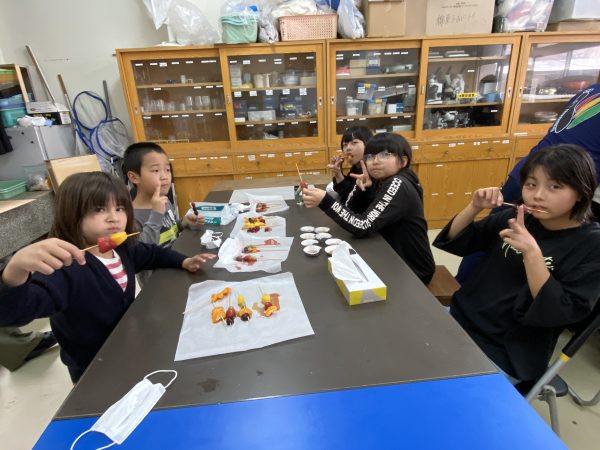 あめを固めるために、少し時間を空けて、5時間目の終わりにみんなで食べました。
