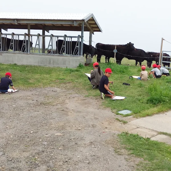 たくさんの牛たちを見たり、仕事の様子を見学しながら描きました。