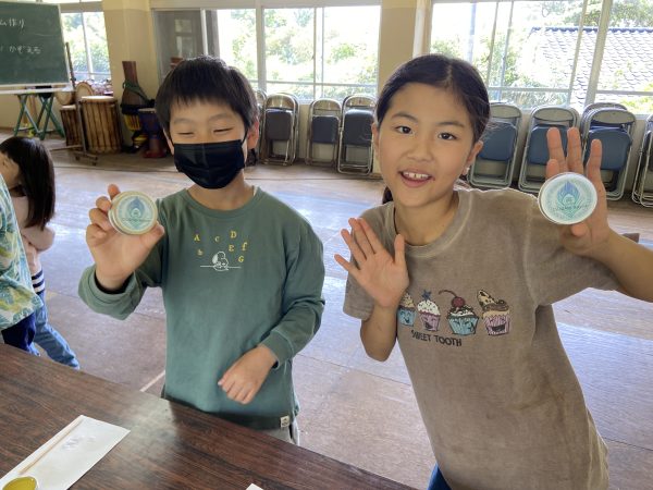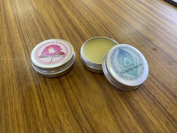 椿シールとクジャクシールを選んで、手作りバームが完成です。