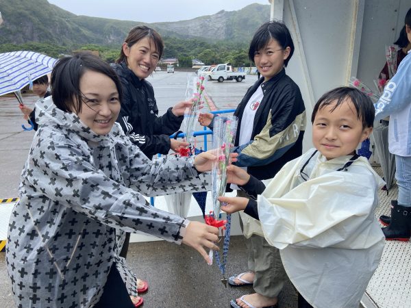 フェリーに乗って、カーネーションの贈り物が届きました。