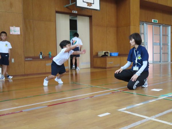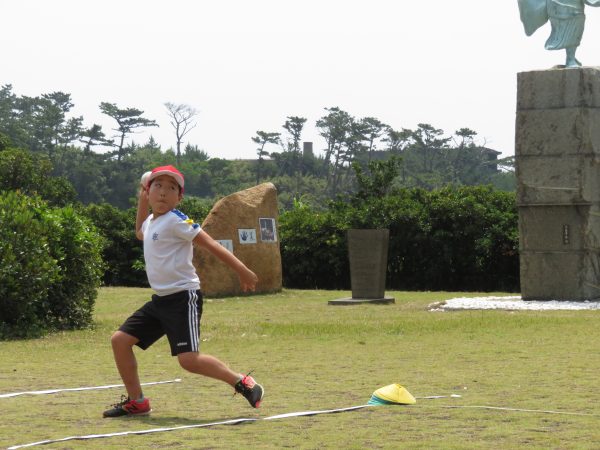 その後は、9年生をリーダーに4つのグループに分かれて、立ち幅跳び、長座体前屈、上体起こし、握力、反復横跳び、ソフトボール・ハンドバール投げを行いました。