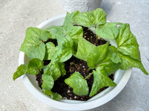 1年生が植えた、朝顔と夕顔の芽が出ました。