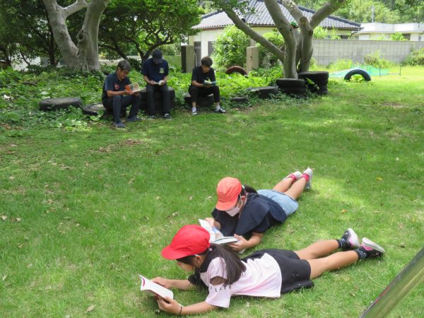 1日目の今日は、5時間目に緑陰読書を行いました。