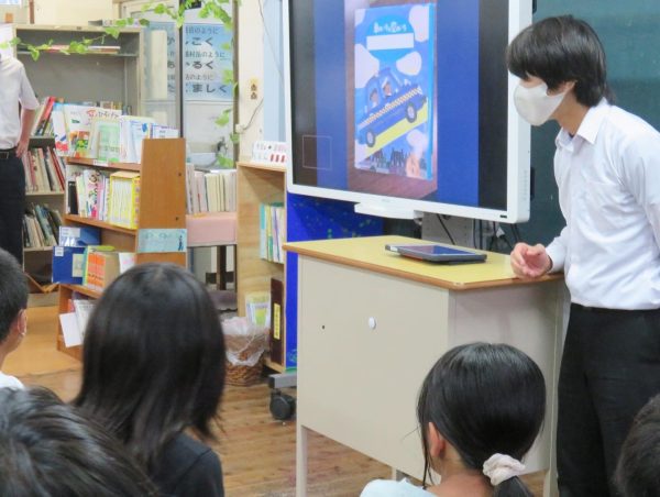 図書室にある本の隠された題名の表紙を見て、どんな名前だったかを当ててもらいました。