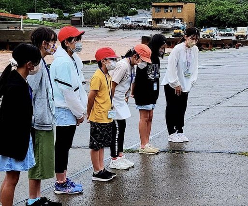 港で出発式を行い、6人が元気よく旅立って行きました。