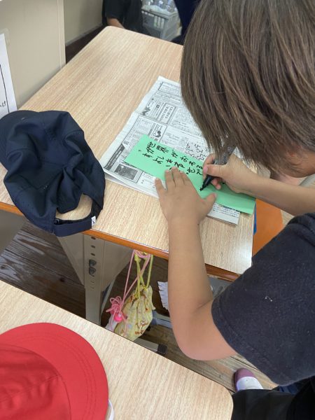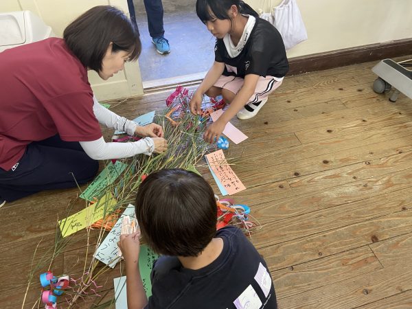 短冊にお願い事を書いて、七夕飾りづくりです。