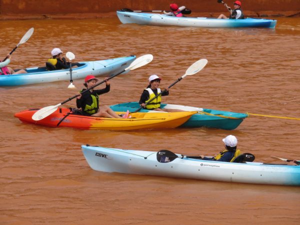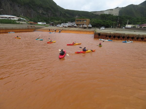 海でのカヤック体験を行いました。いつも見ている茶色の海へ出発です!