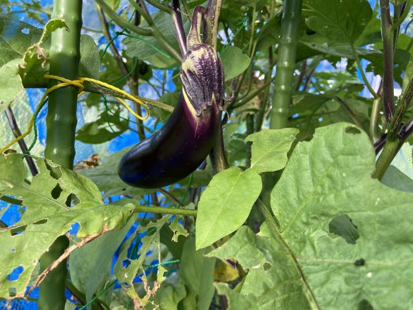 ひまわりが咲いていたり、なすがなっていたりといい感じです。