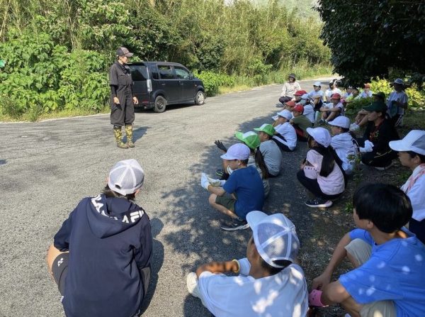 実を拾いやすくするために、地球(ジオ)科で椿畑の草払いに行きました。