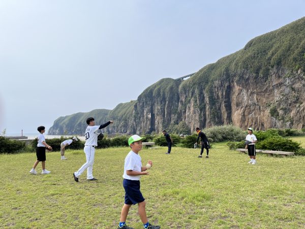 ボールの投げ方や打ち方を教えていただいたり、ピッチングや遠投を見せていただいたりしました。