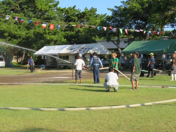 また、地区の消防団の方々がグラウンドに散水してくださいました。