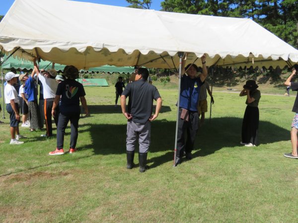 グラウンド整備やテント、万国旗の準備など、みんなで協力して行いました。