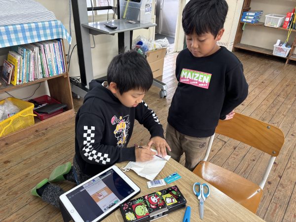 作り方でわからないところは、昼休みに3・4年生の兄さんたちが教えてくれました。