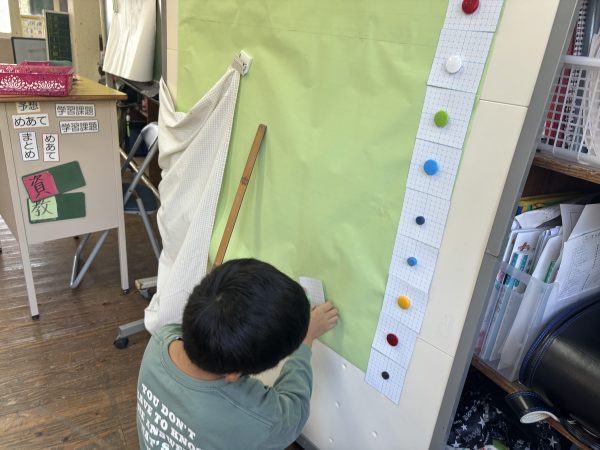 自由進度学習を行なっているので、子どもたちが自分で立てた計画をもとに進めています。