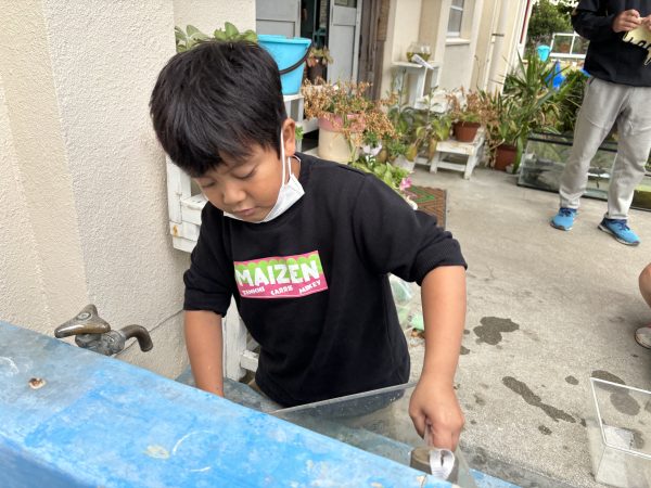カメ部の子どもたちは、昼休みカメのお世話で大忙しです。