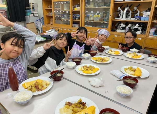 5年生は、ご飯とみそ汁。6年生は、おかず作りに挑戦です。