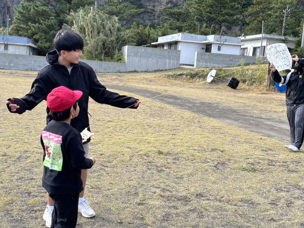 硫黄島の風は強く、なかなか高くあがりませんでしたが、凧あげを楽しんでいました。