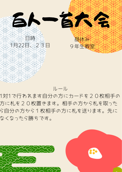 来週月曜日、火曜日に行われる百人一首大会に向けて、猛練習が行われています。