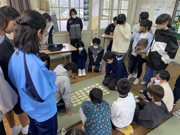 決勝は、8年生VS7年生の戦いでした。全員で、試合の様子を見守ります。