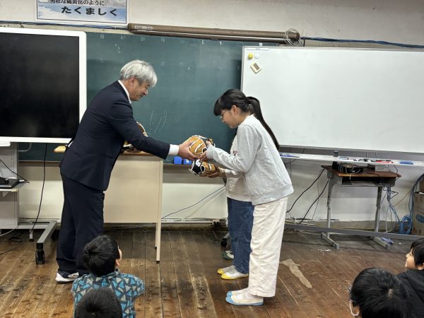 大谷翔平選手から寄贈されたグローブが、三島硫黄島学園にも届けられました。