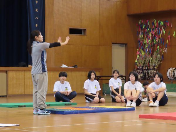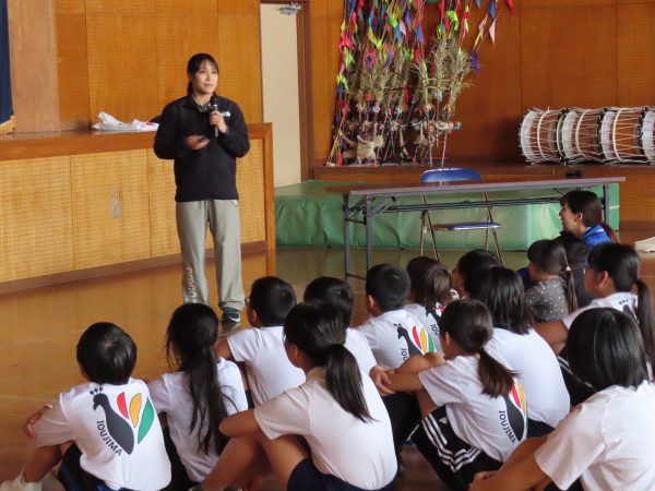 スポーツ庁が行っているアスリート派遣事業で、体操競技でオリンピックや世界選手権で活躍された大島杏子先生が三島硫黄島学園へ来校されました。