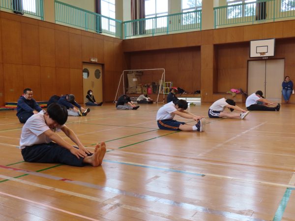 今日の授業では、「できない・無理などのマイナスな言葉は使わない」「みんなで教えあう」「楽しむ」「ケガや体調に気をつける」の4つに気をつけようと確認し、授業がスタートしました。