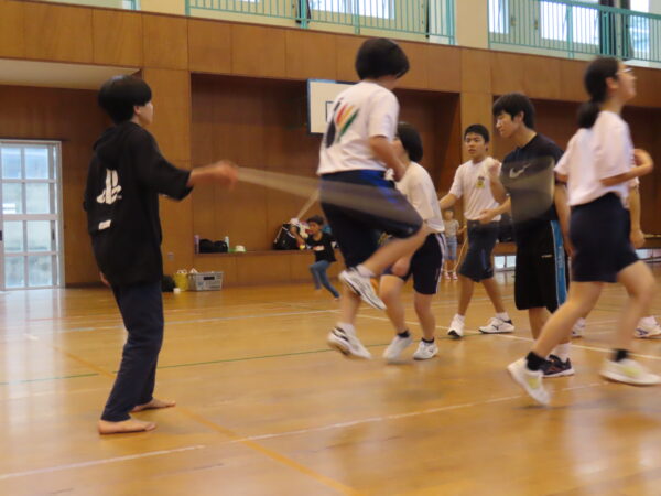 持久跳びや自分で目標を決めたチャレンジなわとび、8の字跳びを披露しました。
