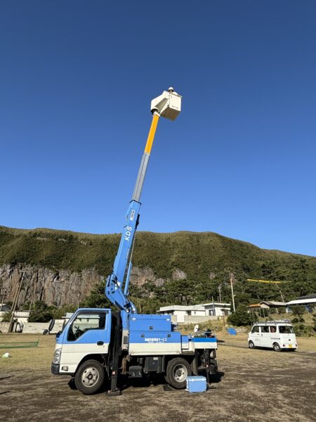 初めて乗る高所作業車は、眺めがよく、とても楽しそうでした。