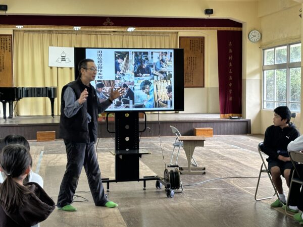 仏壇ができるまでや使われる材料についてお話を聞き、螺鈿のお箸作りに挑戦しました。