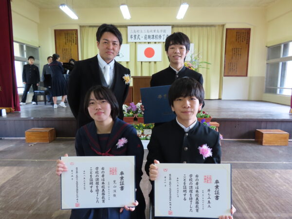在校生、先生方、保護者の方、地域の方々に見守られながら、卒業証書・修了証書を受け取りました。