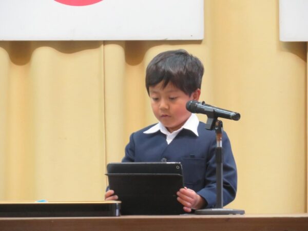 また、児童生徒代表の言葉として、1年生と8年生が発表してくれました。