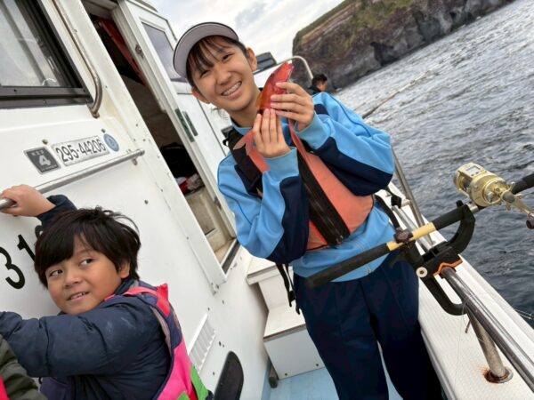 「みしまⅡ」に乗って船釣りを体験するグループと、硫黄島港防波堤から釣りを楽しむグループに分かれて活動しました。