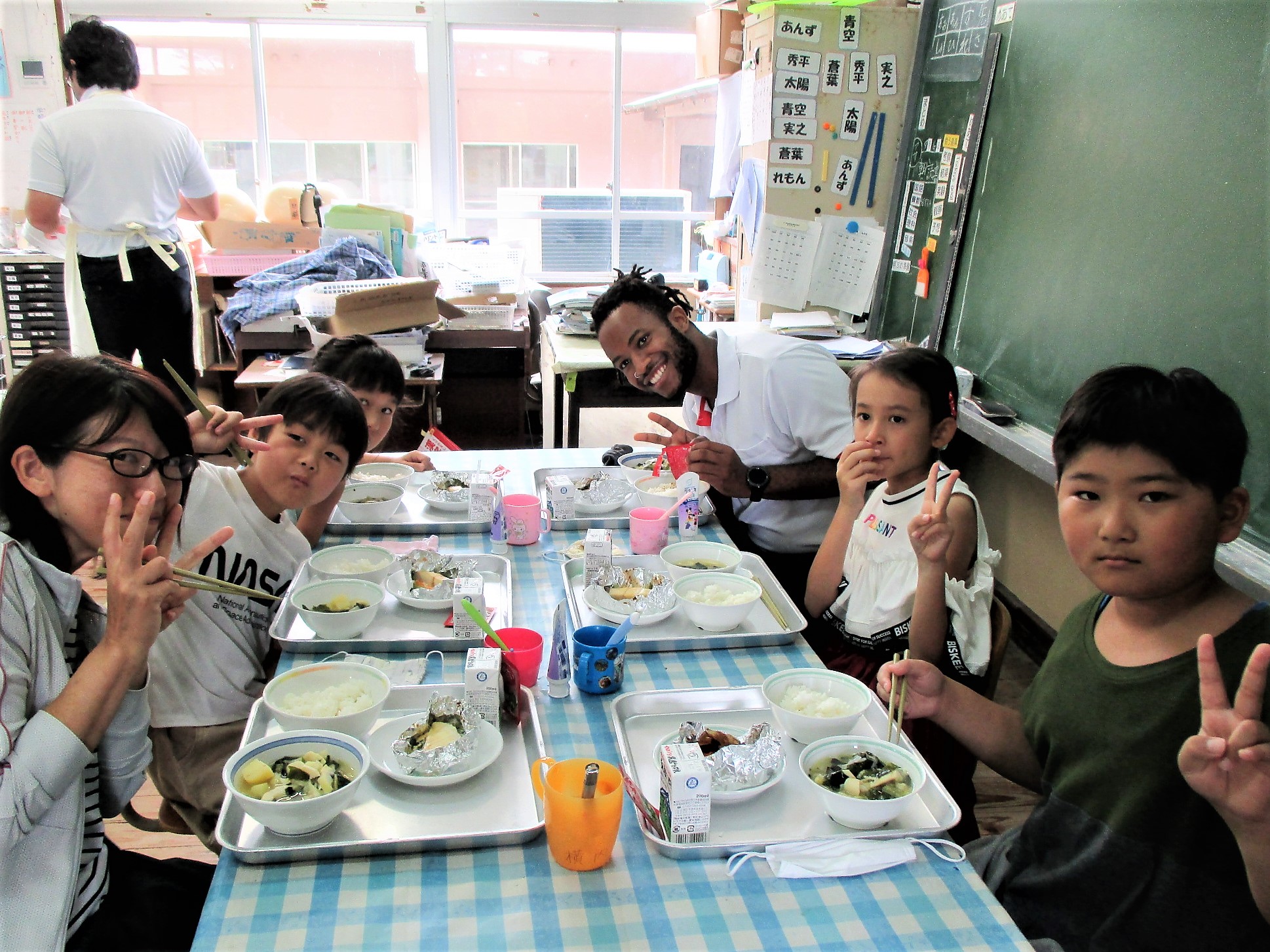 今日,硫黄島学園にALTのスティーヴン先生が来校しました。スティーヴン先生とは英語の授業の時に,遠隔でコミュニケーションを取ることはあるのですが,やはり目の前でやりとりする方がいいですよね。給食も一緒に食べました。スティーヴン先生は明るく陽気で,ドレッドヘアがかっこいいので児童・生徒にとても人気があります。これからも三島村のALTとしてよろしくお願いします!
