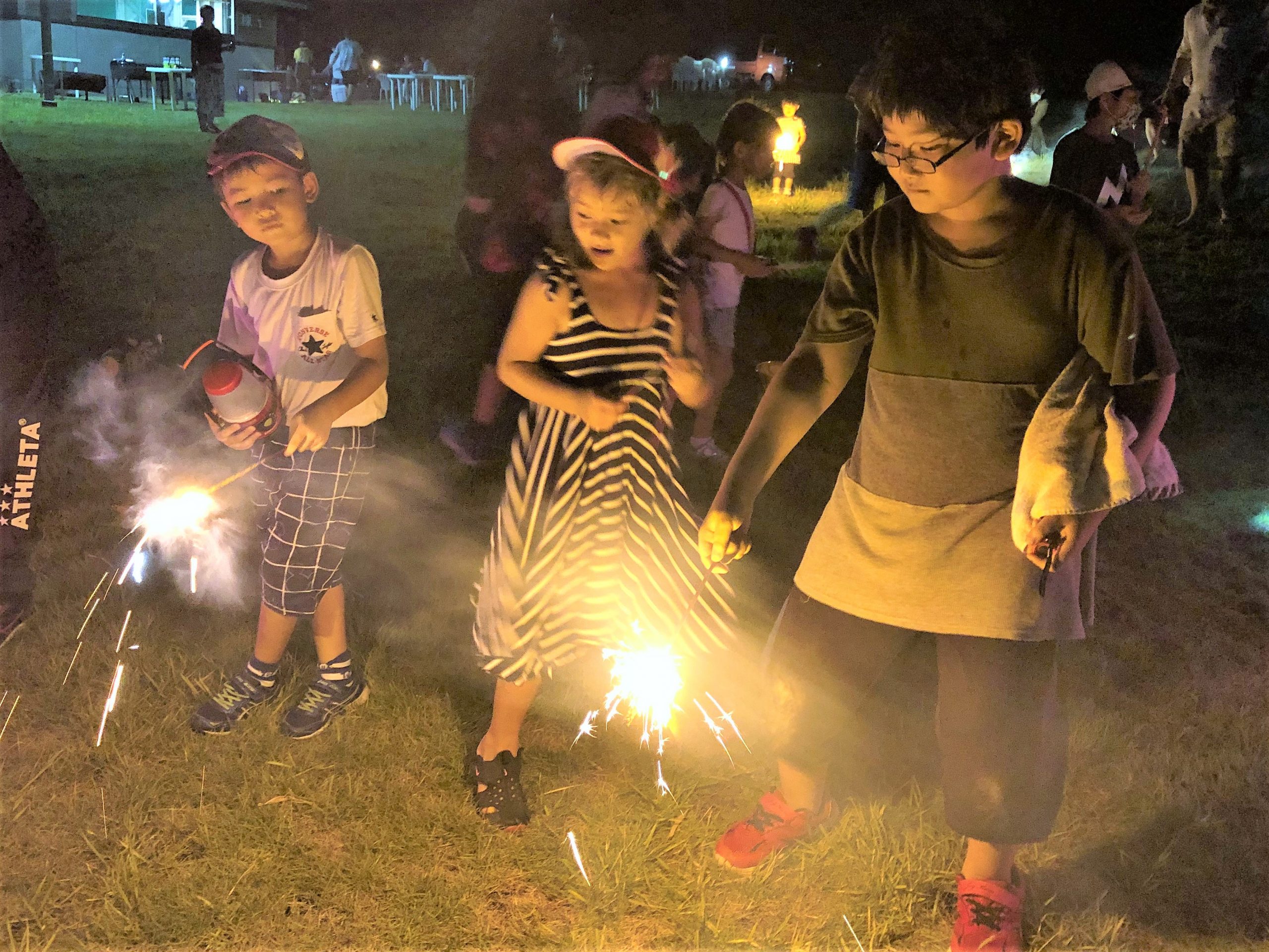 先週の土曜日,子供会最後のイベントである夏キャンプが行われました。今年度は残念ながらキャンプ泊は中止となりました。硫黄島学園はしおかぜ留学生が多く,夏休みの間中みんな帰省していたのですが,その日のフェリーで無事に全員揃いました。皆さんお久しぶりでしたが,元気そうでなによりでした。夏もまだまだ暑いのでプールで気持ちよく泳いだ後,「冒険ランド硫黄島」へ行きバーベキューを楽しみました。みんな腹ぺこだったらしくかなりの食欲でした。その後暗くなってから花火や肝試しを行いましたが,保護者の方々も参加してとても盛り上がりました。夏休みの最後に楽しい想い出ができてよかったですね。
