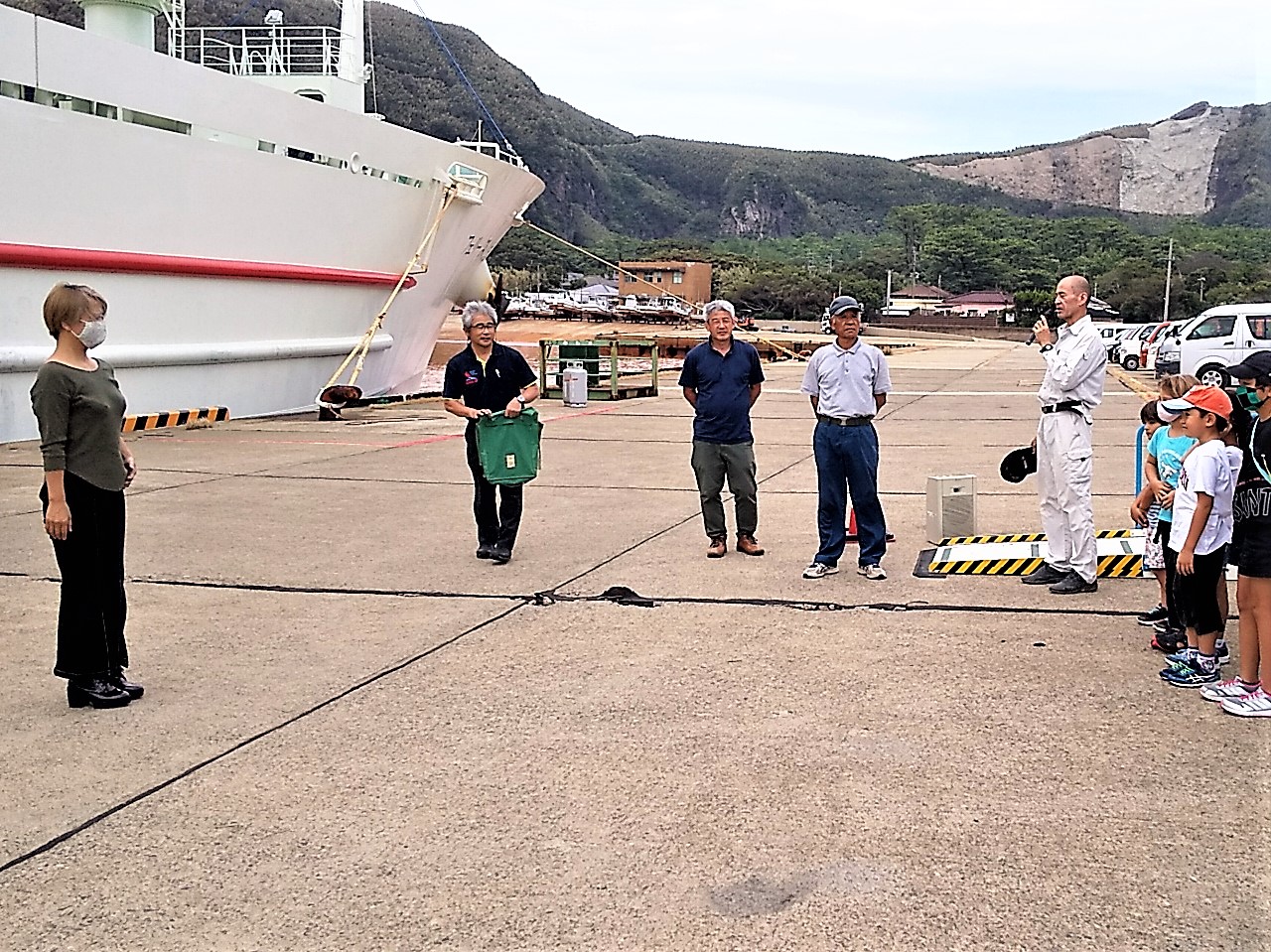 本日は台風明けの初めての学校となりました。また,2学期に入り職員も変わりましたので新任式が行われました。校長先生と養護の先生です。お二人とも非常に個性的で元気いっぱいですので,これからの硫黄島学園をさらに盛り上げていって下さるのではないかと思います。因みに,下の写真は港での歓迎セレモニーでの様子です。いつもは生徒のジャンベの演奏でお出迎えするのですが,最近はコロナ禍のため港での演奏は控えています。早く港で演奏できるようになってほしいものですね。