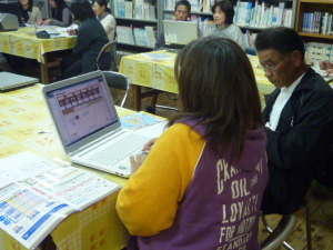 1日の食事内容を入力していきます。慣れないパソコン作業に悪銭苦闘する姿もありました。
