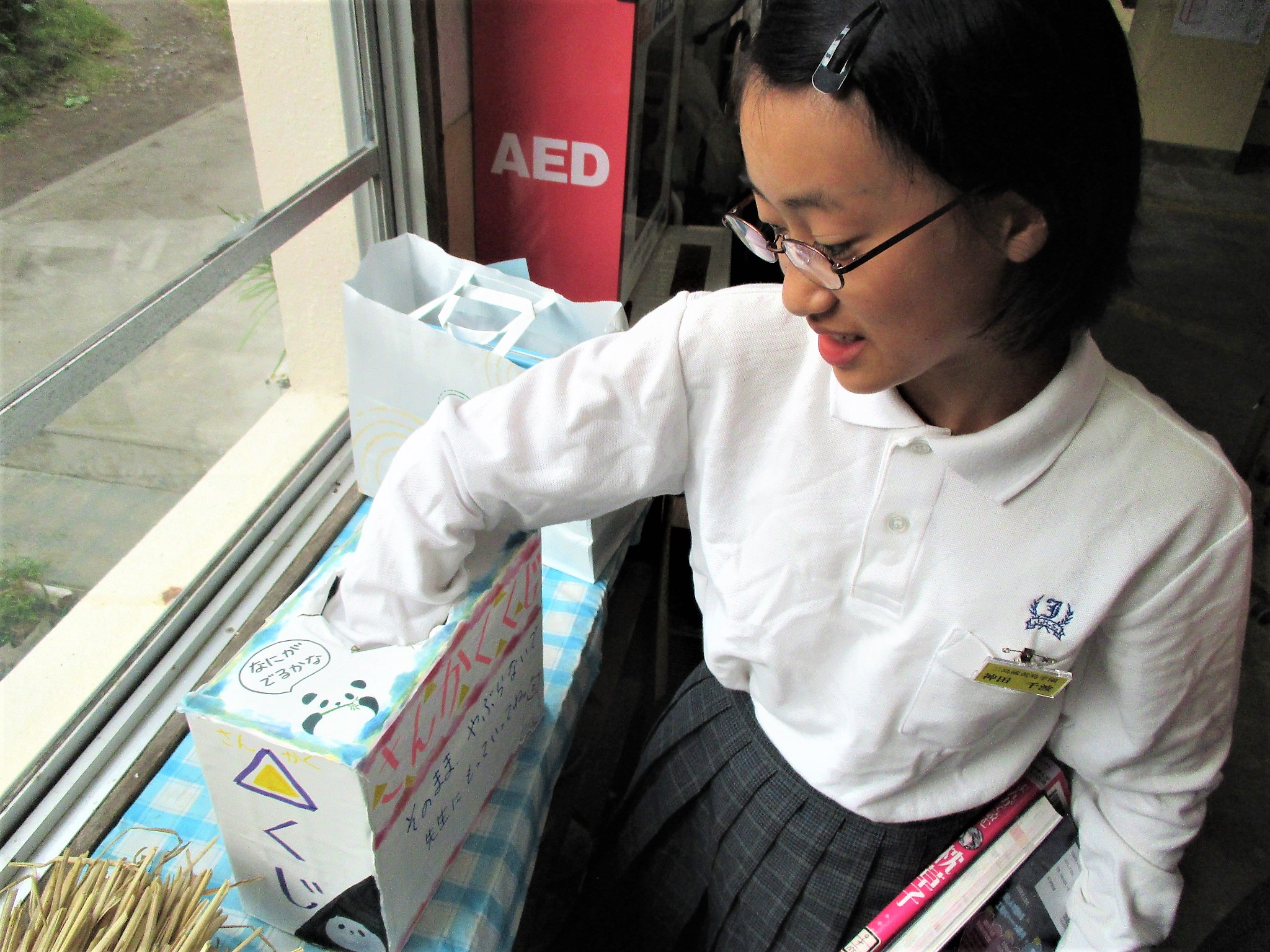 今週はどんぐり読書旬間ということで,読書が好きになるようないろいろな取り組みをしています。写真は生活委員が読書郵便を配達しているところです。読書郵便とは,自分のおすすめの本を周りの人に紹介するものです。読書郵便の他にも,たくさん読書をすることで福引きが引け,プレゼントがもらえるという活動もしています。なんだか楽しそうなイベントですね。
