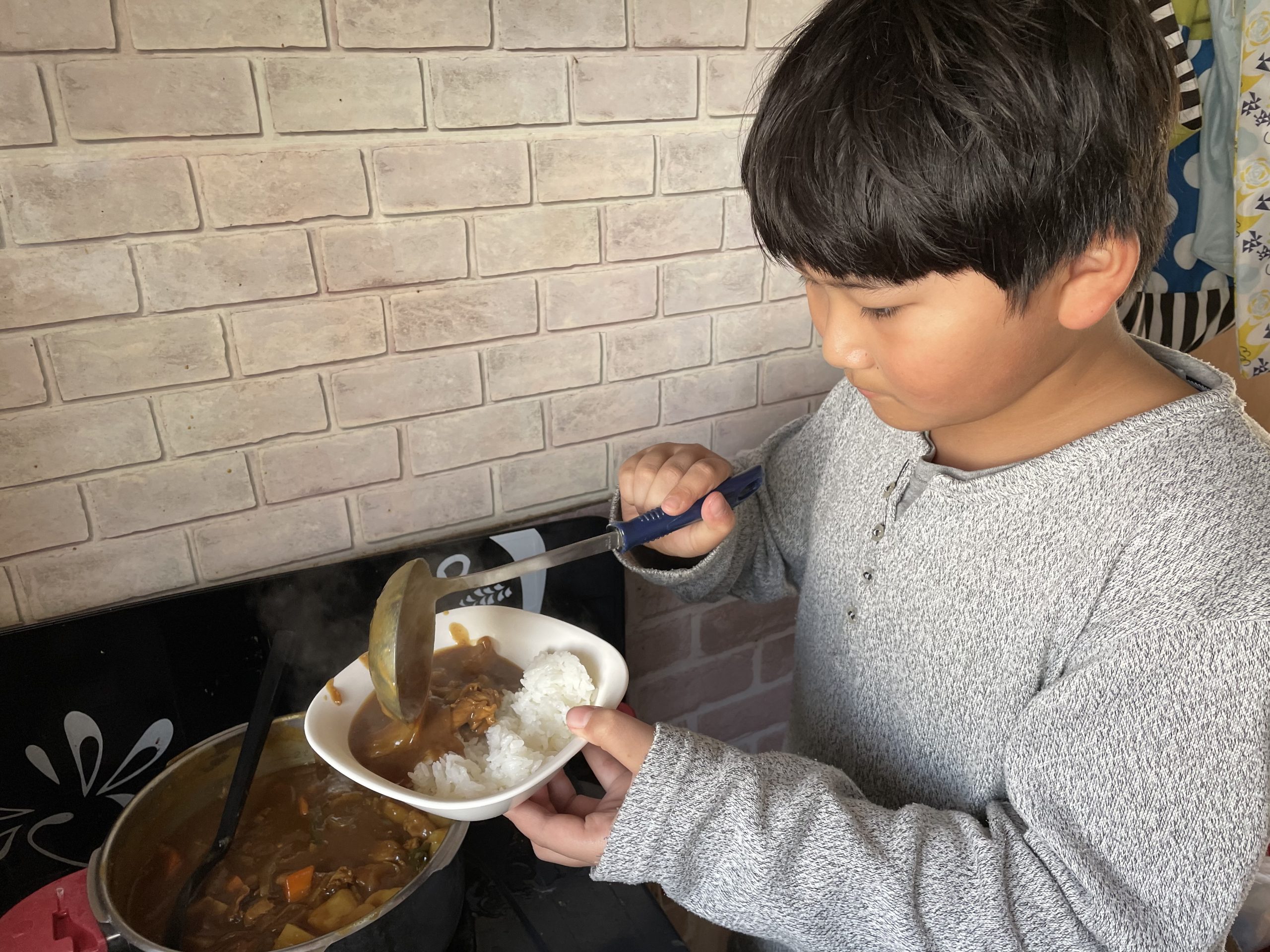 みんなで作ったカレーは,おいしいに決まっています。おかわりもいっぱいしましたよ。お家では甘口専門の子ども達。今回は中辛で作りました。「食べられるかなぁ。」と心配していましたが,味見をすると・・・「あっ。大丈夫だ!」大人の階段を一歩上ったね♪