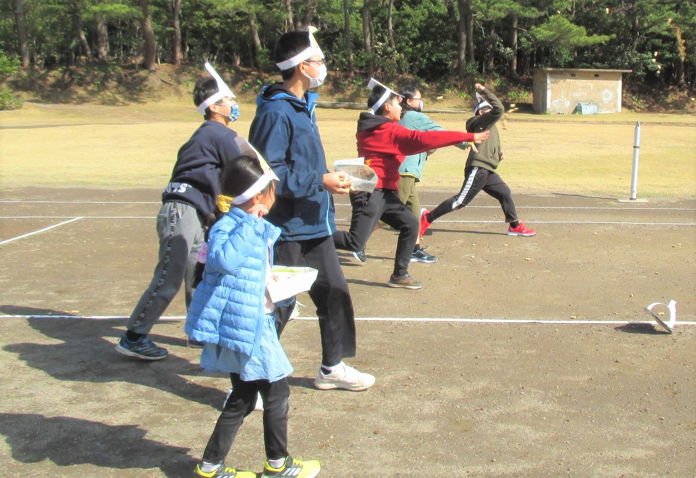 昼休みにみんなで遊ぶ「みしまっこの日」に豆まきしました。