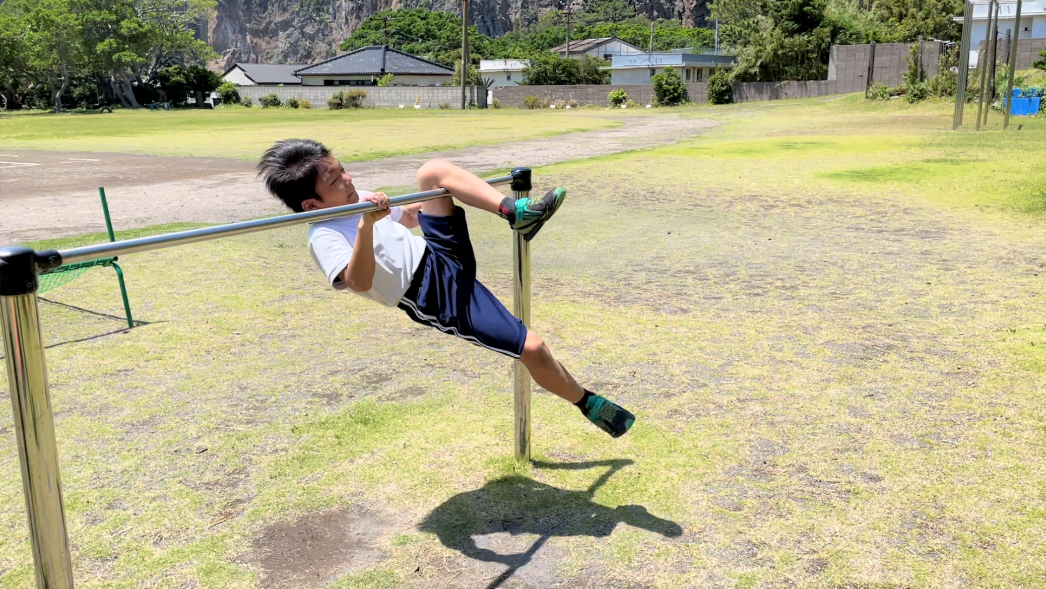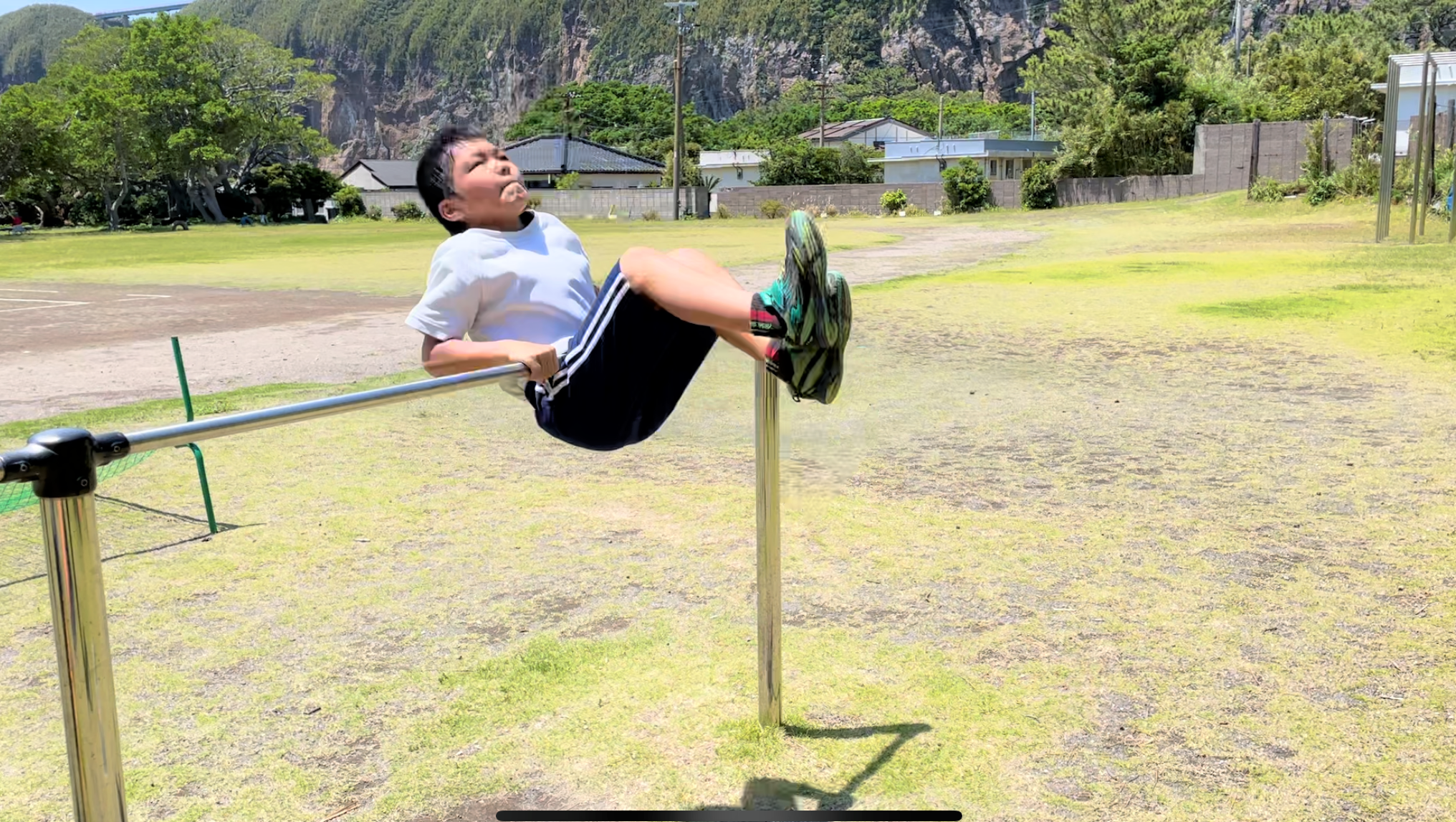 ①足掛け上がり:伸ばしている足を思い切り振る!
